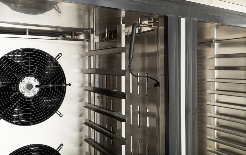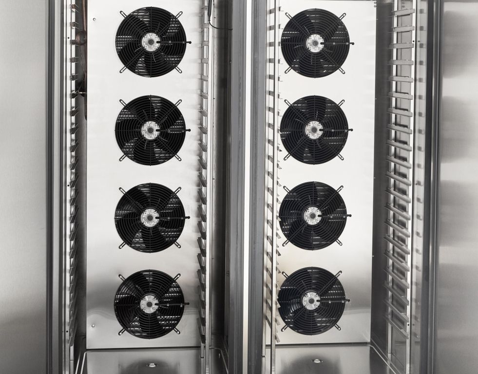- полезный объем камеры 1,1 м3; - 40 уровней универсальных направляющих для гастроемкостей GN 1/1 (530x325 мм) глубиной до 65 мм или EN 1/1 (600х400 мм), расстояние между уровнями 70 мм;G21 - холодильный агрегат на основе компрессора Copeland (Emerson); - хладагент - R404a; - электронный блок управления с возможностью регулирования и поддерживания необходимой температуры; - цельнозаливной пенополиуретаном корпус; - все поверхности, соприкасающиеся с продуктами питания, выполнены из аустенитной нержавеющей стали AISI 304; - климатический класс 5; - 2 воздухоохладителя с 4-мя вентиляторами на каждом для равномерного распределения температуры внутри полезного объема; - автоматическая оттайка горячим газом; - уплотнитель с магнитной вставкой (доводчик) на двери для обеспечения полной теплоизоляции; - трехточечный температурный щуп для измерения температуры внутри продукта; - подогрев дверного проема в месте касания уплотнителя двери; - регулируемые по высоте ножки; - 8,7 кВт, 400 В. |