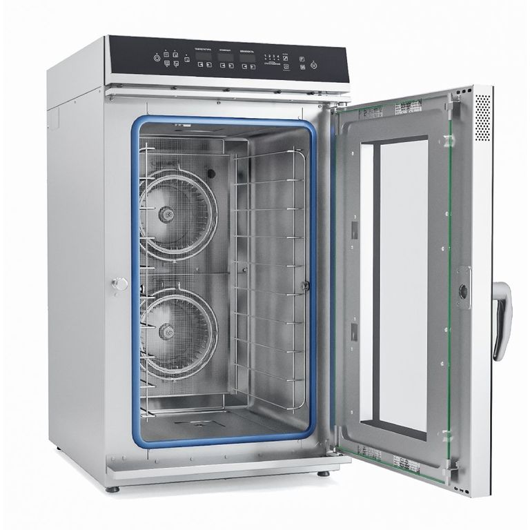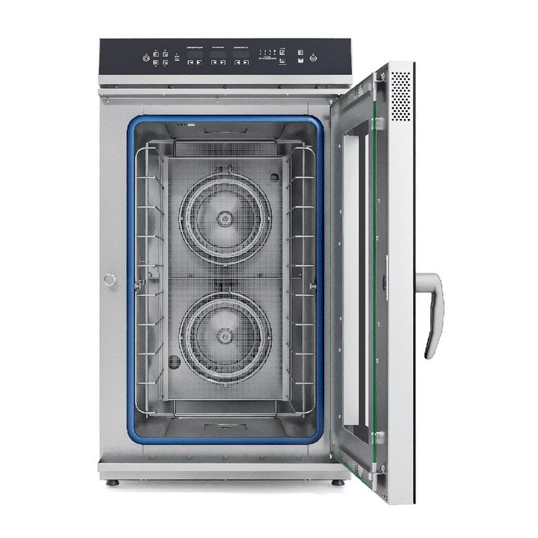 - бойлерный тип (встроенный парогенератор) - удобная панель управления на русском языке (мембранная клавиатура) - легкость в обслуживании - ТЭН парогенератора легко очищается от накипи - вентилируемая дверца с двойным термостойким остеклением предотвращает риск получения ожога с внешней стороны двери - двухходовый механизм открывания дверцы духовки обеспечивает безопасность персонала от воздействия горячего пара - система закрывания двери "свободные руки" - дверь легко можно закрыть одним движением руки - лоток для сбора конденсата предотвращает стекание капель воды на пол при открытии двери - камера с закругленными внутренними углами для удобства эксплуатации и обслуживания - внутренняя подсветка камеры - степень защиты камеры от проникновения влаги соответствует стандарту IPX5 (конструкция духовки позволяет мыть ее изнутри под струей воды) - высокоточный температурный щуп можно использовать со всеми базовыми программами для увеличения эффективности приготовления - таймер от 1 минуты до 9 часов 59 минут - 2 реверсивных вентилятора, 1 скорость - возможность записи до 110 собственных программ приготовления - до 4 этапов приготовления в каждой программе - низкое энергопотребление (10,5 кВт) при высокой производительности снижает эксплуатационные расходы на приготовление блюд - автоматика обеспечивает быстрый выход пароконвектомата на рабочий режим РЕЖИМЫ: - конвекция (+30°С...+270° С) - конвекция + пар (+30°С...+240° С) - разогрев с паром (+100°С...+160° С) - низкотемпературный пар (+30°С...+98° С) - пар (+98° С) Пароконвектомат следует разместить в хорошо проветриваемом помещении. Во избежание накопления пара в помещении пароконвектомат рекомендуется размещать под воздухоочистительным (вытяжным) зонтом или использовать зонт ЗВВ-750П (код для заказа 21000003336). |