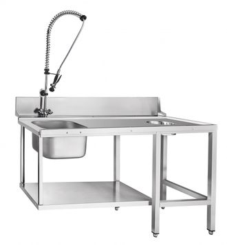 - предмоечный стол для купольных посудомоечных машин МПК-700К, МПК-700К-01, МПК-700К-04, МПК-1100К, МПК-1400К; - отверстие для сбора крупных отходов; - цельнотянутая ванна для предварительного ополаскивания посуды (400х400х300 мм); - душ для холодной и горячей воды; - выполнен полностью из нержавеющей стали; - крепление к посудомоечной машине осуществляется с помощью верхнего зацепа и нижних винтов; - возможность установки как в левом, так и в правом исполнении; - регулируемые по высоте ножки. |