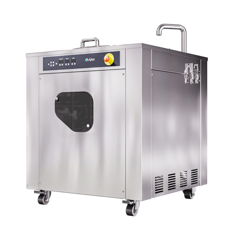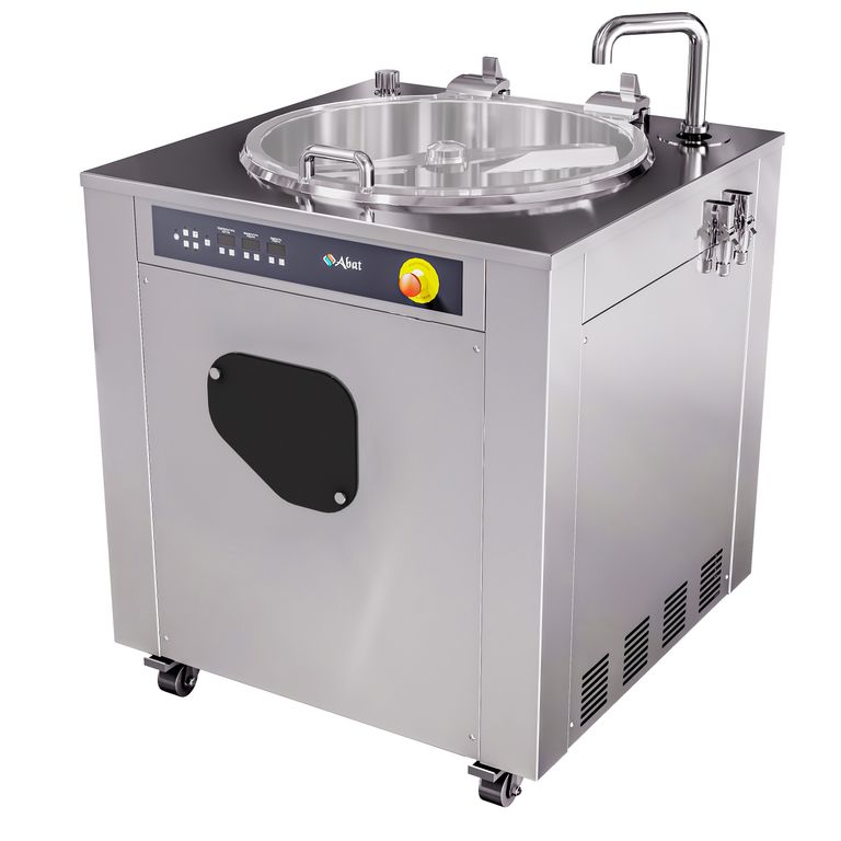 Котел для плавления шоколада КПШ-150 предназначен для плавления шоколада и поддержания его температуры. Нагрев продукта осуществляется за счет водяной рубашки под управлением терморегулятора. Для откачивания продукта котлы оснащены насосом, управляемым переключателем, расположенным на боковой панели. Управление насосом может осуществляться и с помощью датчика уровня, расположенного в темперирующей камере. Слив готового продукта может быть произведен и с переднего крана слива, расположенного на передней стенке под съемной крышкой. Котлы оснащены миксером, который легко снимается для очистки. Все детали котлов выполнены из аустенитной нержавеющей стали. Для удобства транспортировки котлы оснащены колесными опорами с ножным тормозом. |