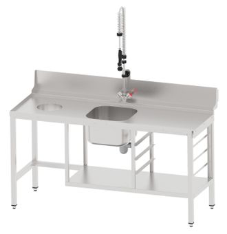 - универсальный предмоечный стол для купольных и туннельных посудомоечных машин; - отверстие для сбора крупных отходов; - ванна для предварительного ополаскивания посуды (400х400мм); - душ для холодной и горячей воды; - выполнен полностью из нержавеющей стали; - крепление к посудомоечной машине осуществляется с помощью верхнего зацепа и нижних винтов; - возможность установки как в левом, так и в правом исполнении; - регулируемые по высоте задние ножки. |