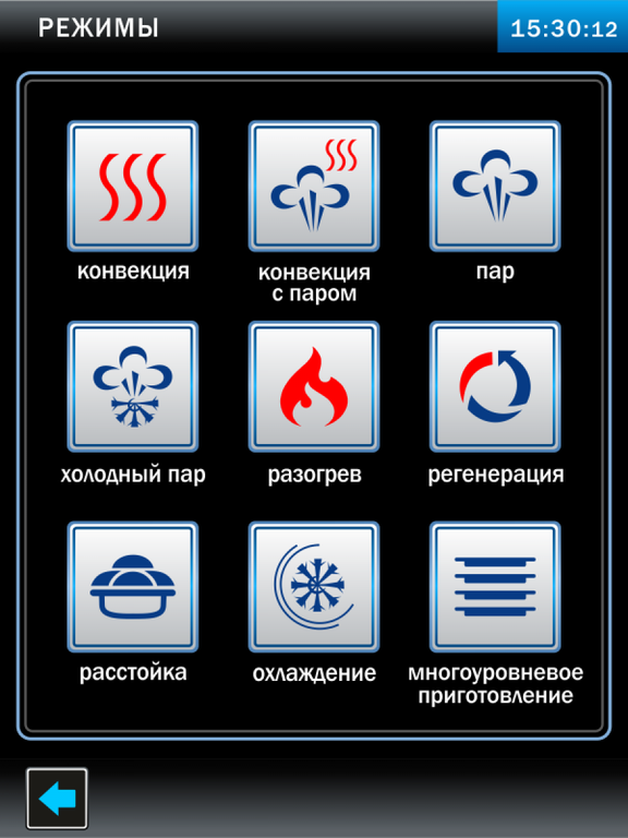 Несмотря на широчайшие функциональные возможности этих пароконвектоматов, управлять ими очень просто. Линейка пароконвектоматов имеет яркую, предельно информативную сенсорную панель управления высокого разрешения с индикацией на русском языке и подробной инструкцией.