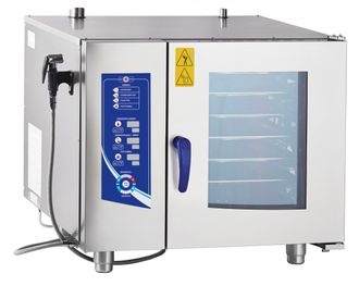 Пароконвектомат ПКА 6-1/1 ВМ2 инжекционного типа предназначен для приготовления различных блюд методом обработки паром и горячим воздухом по отдельности или комбинированно. Способ образования пара - инжекционный впрыск влаги в камеру. Модель сочетает в себе надежность и производительность предыдущих предыдущих, а также ряд новых технических решений, которые делают его использование еще более удобным и легким. При одновременном приготовлении различных блюд каждое из них сохраняет свой вкус и аромат, большинство витаминов и минеральных веществ, выглядит аппетитным и свежим.
