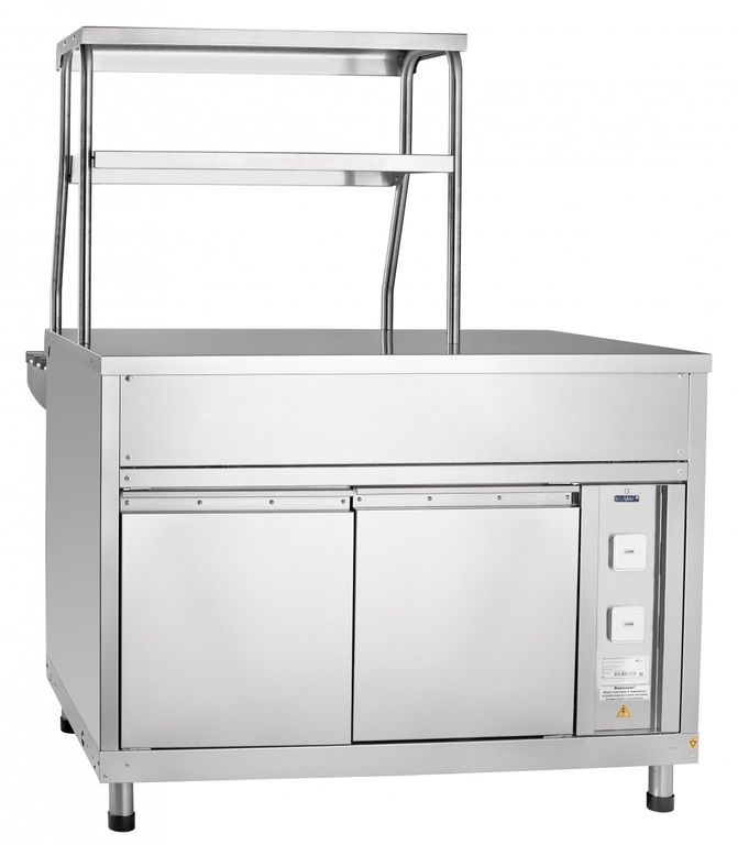 Прилавок Abat ПГН-70КМ используется в составе линий раздач на предприятиях общественного питания для выкладки горячих напитков и мучных изделий. Модель оснащена подсветкой, 2 розетками с заземлением для подключен