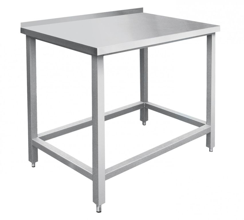 Усиленный крашенный стальной каркас и стяжки выполнены из трубы, столешница с бортиком - из нержавеющей стали AISI 304 с подкладкой из влагонепроницаемой фанеры толщиной 12 мм. Стол разбирается для удобства транспортировки.