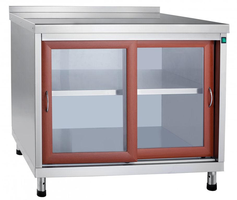 Все детали стола изготовлены из нержавеющей стали. Стол оснащен двумя дверцами-купе, изготовленными из МДФ, и сплошной полкой, регулируемой по высоте. Регулируемые по высоте ножки. Внутренний объем стола имеет подсветку.
